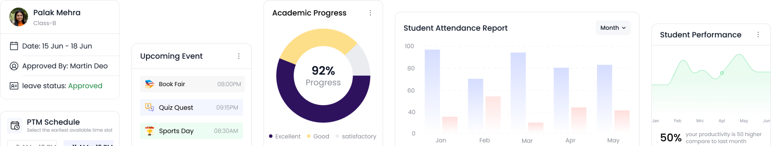 - Track attendance, homework, and exam schedules