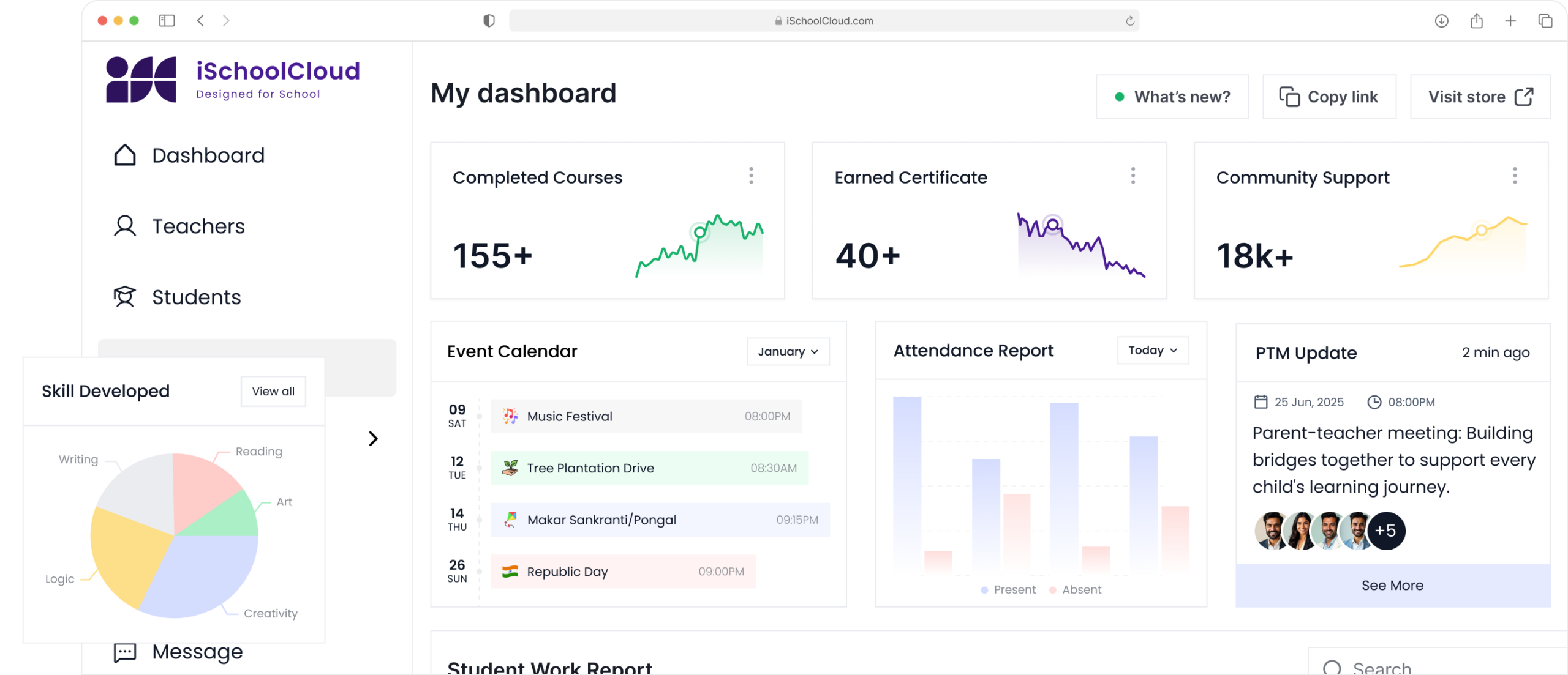 Parents can finally stay in the loop 🔄 with everything—from attendance 📝 to exam schedules 📅—right on their phone 📱. Stay connected with real-time alerts 🔔 and easy access 👌; iSchoolCloud keeps you connected 🤝 without the stress 😌.